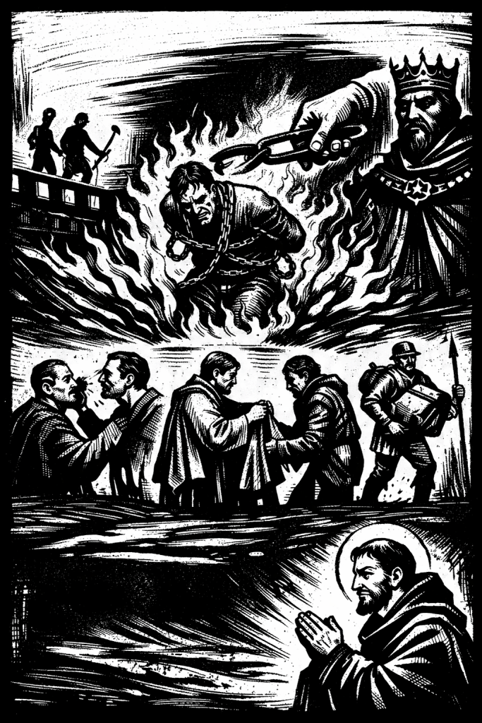 La seconda parte del quarto grado radicalizza il tema della pazienza: la tribolazione è purificazione e non semplice incidente. Gregorio Magno legge questo fuoco come prova che consuma l’orgoglio nascosto. La sottomissione a uomini posti sul nostro capo non è esaltazione dell’abuso, ma riconoscimento che Dio salva anche attraverso mediazioni faticose. Bernardo e Guglielmo di Saint-Thierry vedono in questi versetti l’ingresso nella scuola della carità perfetta: benedire chi maledice significa che l’io non è più il centro. La pazienza evangelica di Benedetto ha quindi un carattere pasquale: si attraversa la contraddizione senza spezzare la comunione.