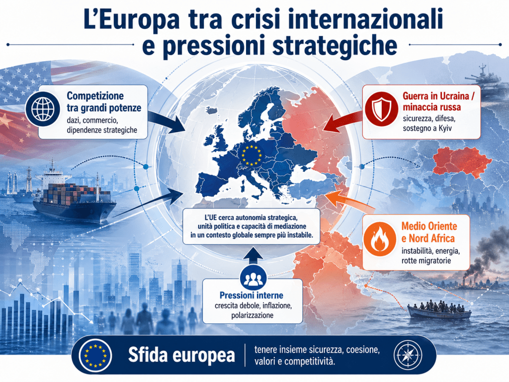 Queste sei fonti permettono di ricostruire la posizione europea e italiana senza ridurla a reazione emotiva a Trump. L’Europa possiede risorse economiche, industriali e normative; deve però trasformarle in velocità strategica. L’Italia, dentro questa transizione, può contare su geografia e diplomazia, ma deve sciogliere il nodo fra ambizioni internazionali e sostenibilità finanziaria.
